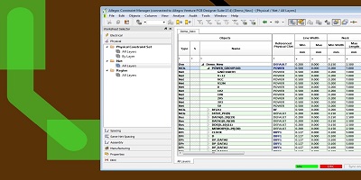 在上面的圖片中,您可以看到約束管理器如何描繪用于布線不同電力網(wǎng)的線寬設(shè)置。除了這些寬度之外,它還可以設(shè)置間隙,通孔,布線拓撲,組件間距,阻抗設(shè)置等規(guī)則。約束管理器使您可以通過易于管理的門戶進入設(shè)計數(shù)據(jù)的約束信息,從而控制電路板的設(shè)計方式。