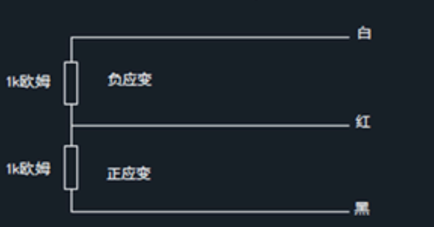 注:負(fù)應(yīng)變電阻,當(dāng)收到壓力或拉力時(shí),電阻變小。